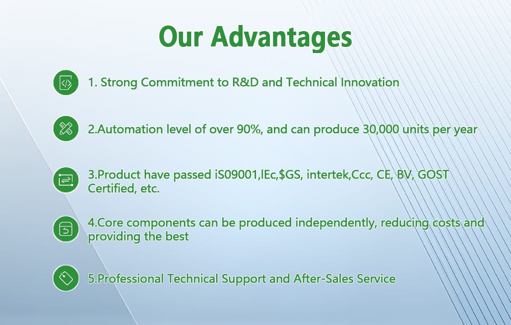 3. Certified Quality & Safety: Our comprehensive certification portfolio (including ISO9001, IEC, and CE) validates our commitment to meeting the world’s most stringent safety and performance standards. These certifications ensure risk-free global deployment and long-term operational reliability.