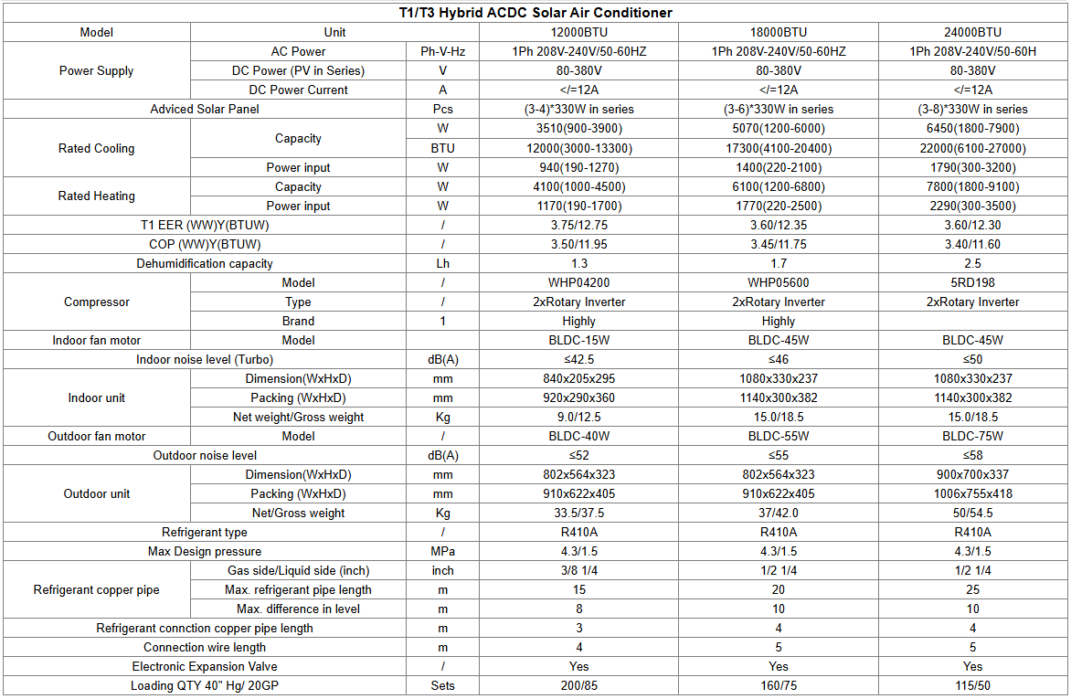 Deye Hybrid Solar Air Conditioner combines solar and grid power to deliver high-efficiency cooling with lower electricity bills. Available in 12000BTU, 18000BTU, and 24000BTU capacities, this unit is perfect for home use, offering stable performance even during power fluctuations. With intelligent hybrid operation, it reduces energy consumption while ensuring year-round comfort. Ideal for sustainable living and off-grid scenarios.