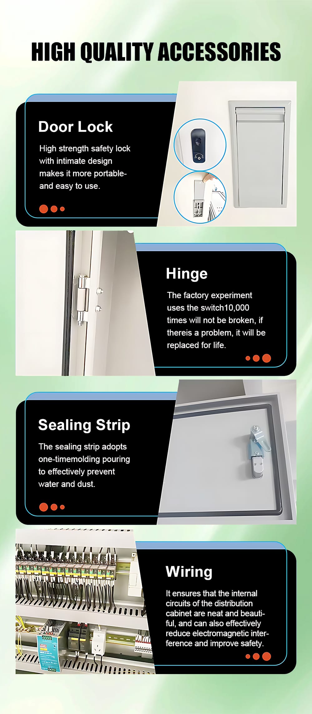The cabinet door uses durable industrial hinges designed for frequent use. Factory testing confirms that the hinges withstand more than 10,000 opening and closing cycles without deformation or failure. This ensures stable door alignment and smooth operation throughout years of service in industrial and infrastructure environments.
