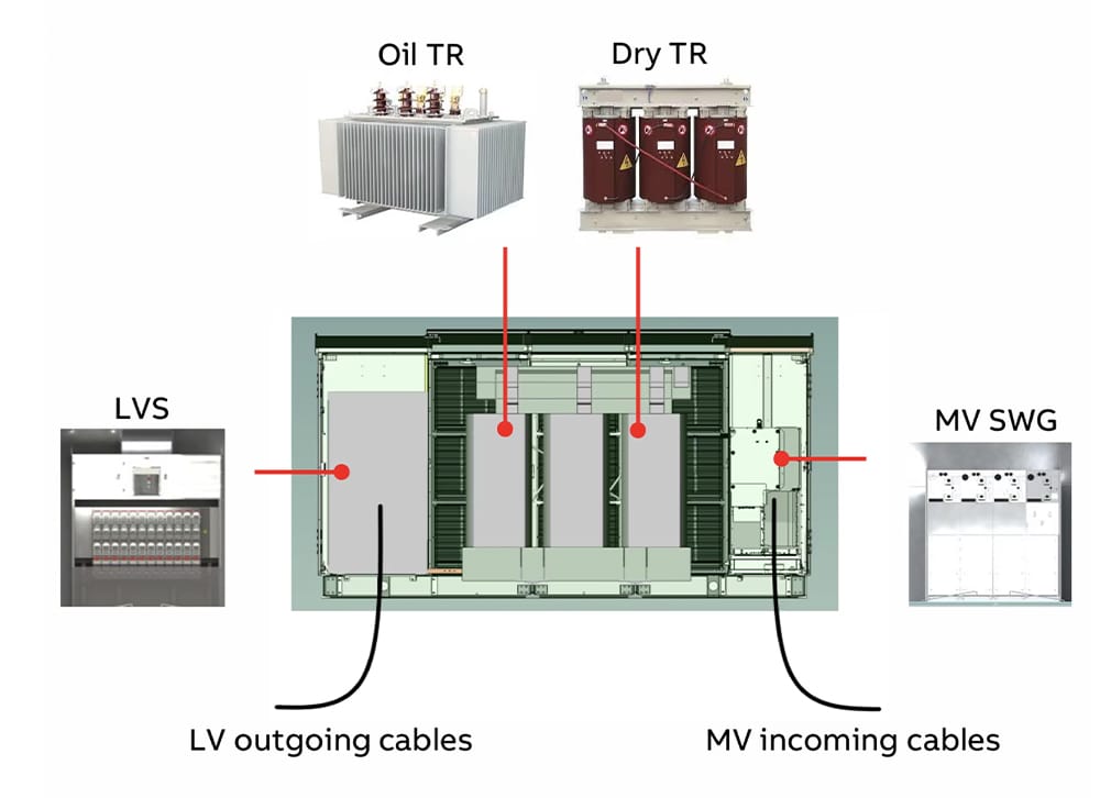 | Transformer (Oil or Dry Type) | Voltage conversion from MV to LV | Flexible selection based on environment |