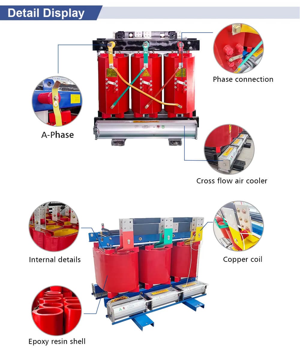 Dry transformers are designed for demanding industrial environments. Constructed with a laminated grain-oriented silicon steel magnetic core and high-voltage windings insulated with heat-activated epoxy resin film, these transformers offer excellent electrical performance, high dielectric strength, and superior resistance to short circuits and harsh operating conditions. Class F insulation ensures reliable operation, making them ideal for power distribution in factories, substations, and commercial buildings.