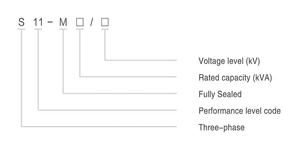 The model identifier of the S11-M-1250kVA transformer encapsulates several vital technical attributes in a standardized format.