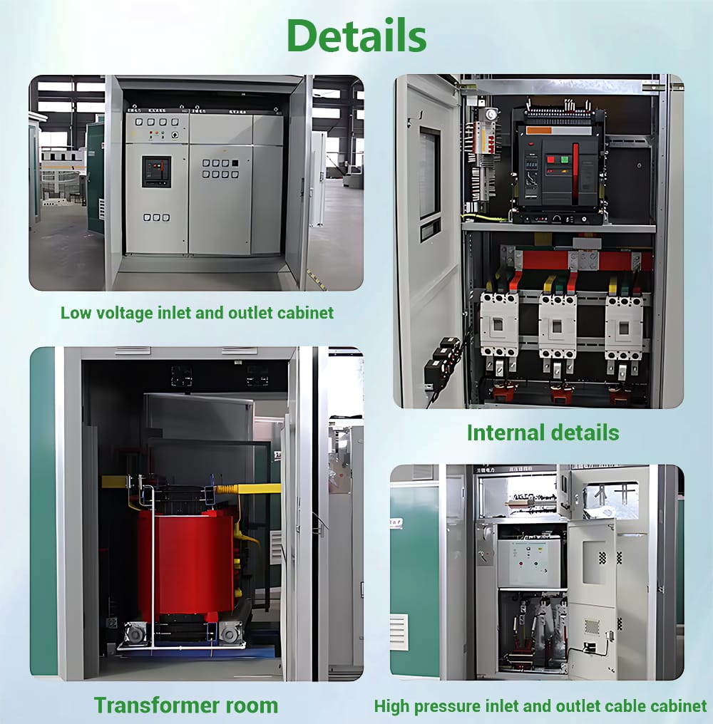 As a fully self-contained power solution, the substation integrates high-voltage reception, voltage transformation, and low-voltage distribution within a single, secure enclosure. Enhanced with smart monitoring capabilities and a high ingress protection (IP) rating, it ensures operational safety and reduces maintenance needs. This visual underscores the product’s identity as a reliable, technologically advanced, and durable power infrastructure solution—ideal for modern grid upgrades and industrial power applications.