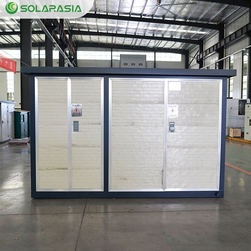 This powerful primary image showcases the fully assembled 315KVA European Box Type Substation, immediately establishing its professional profile and robust build quality. The photograph captures the unit’s comprehensive exterior, emphasizing its compact, space-saving footprint that is ideal for both urban and industrial settings where real estate is at a premium.