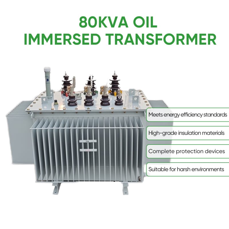 Efficient and durable 80KVA oil immersed transformer designed for three-phase power, stable cooling, and long service life in harsh environments.