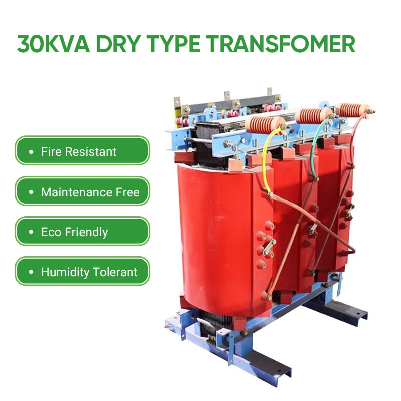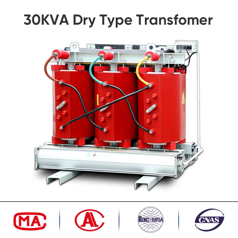 The SCB11 30KVA Cast Resin Transformer is a three-phase dry type transformer designed with epoxy resin–cast windings for excellent insulation, fire resistance, and moisture protection. As a 30kVA dry transformer, it is widely used in commercial buildings, industrial plants, and indoor distribution systems requiring low maintenance and high safety.