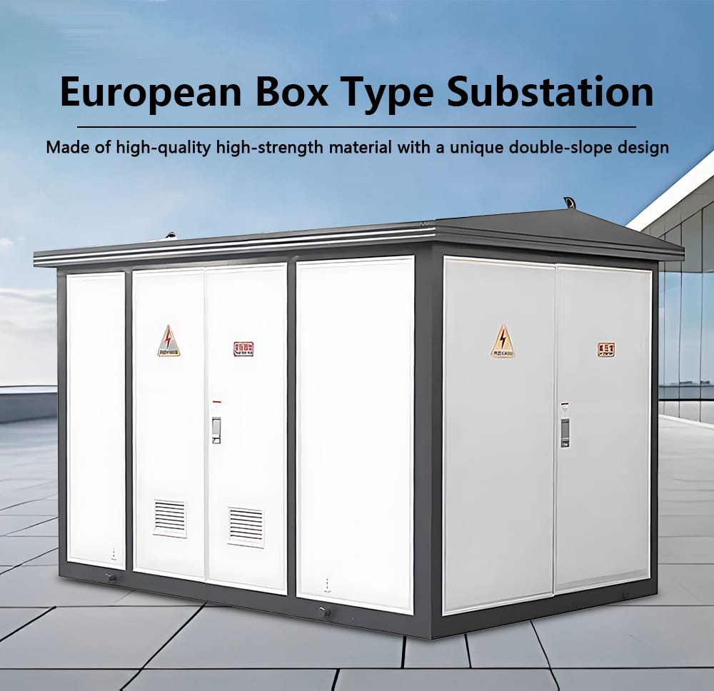 This powerful primary image showcases the fully assembled 315KVA European Box Type Substation, immediately establishing its professional profile and robust build quality. The photograph captures the unit’s comprehensive exterior, emphasizing its compact, space-saving footprint that is ideal for both urban and industrial settings where real estate is at a premium.